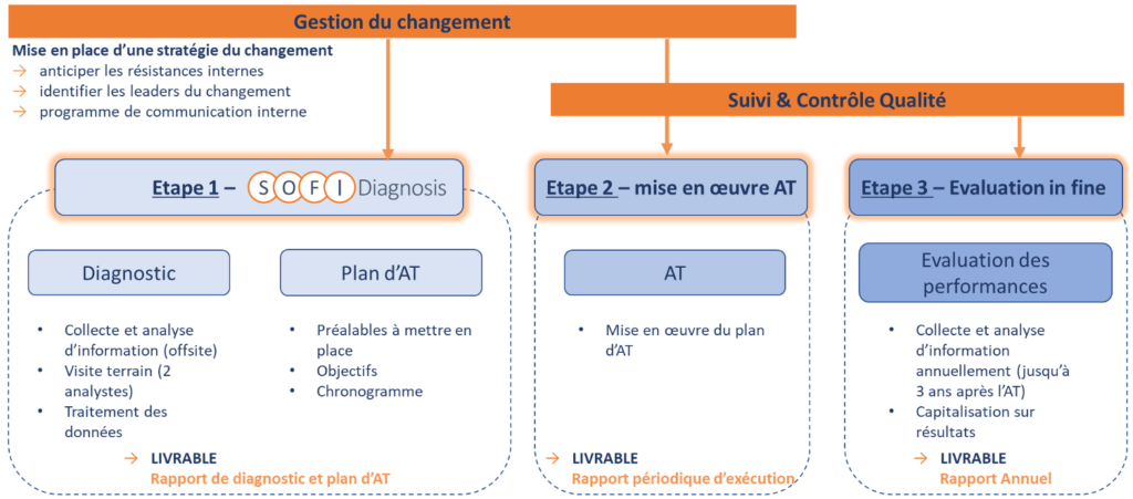 La valeur ajoutée de Diagnostic SOFI-PSF réside dans l’analyse de la capacité du PSF à changer, avec un focus particulier sur le capital humain afin de s’assurer que toutes les conditions nécessaires soient remplies pour impulser un changement durable.